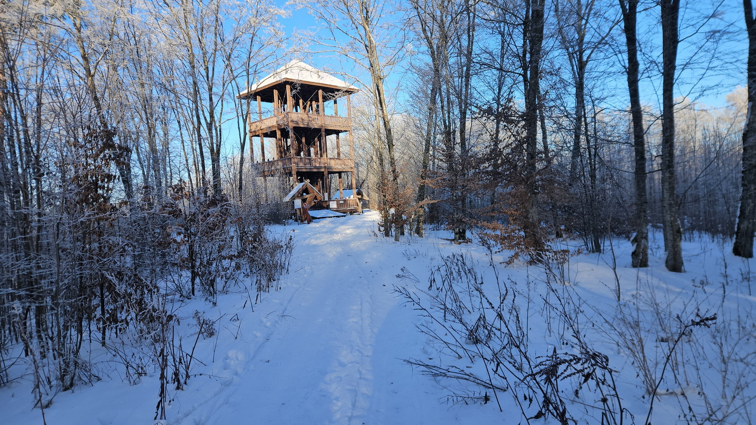 Ku mojej uciesze trasa wiodła przez Górę św. Anny, skąd roztacza się przepiękny widok. Sam nie wchodziłem wieżę, ponieważ byłem operatorem drona – najpierw z dołu, a następnie z góry zrobiłem kilka fajnych ujęć. Jak widać na filmie, w takim mrozie nie jest łatwo operować sprzętem, kiedy trzeba co chwilę zdejmować rękawice.