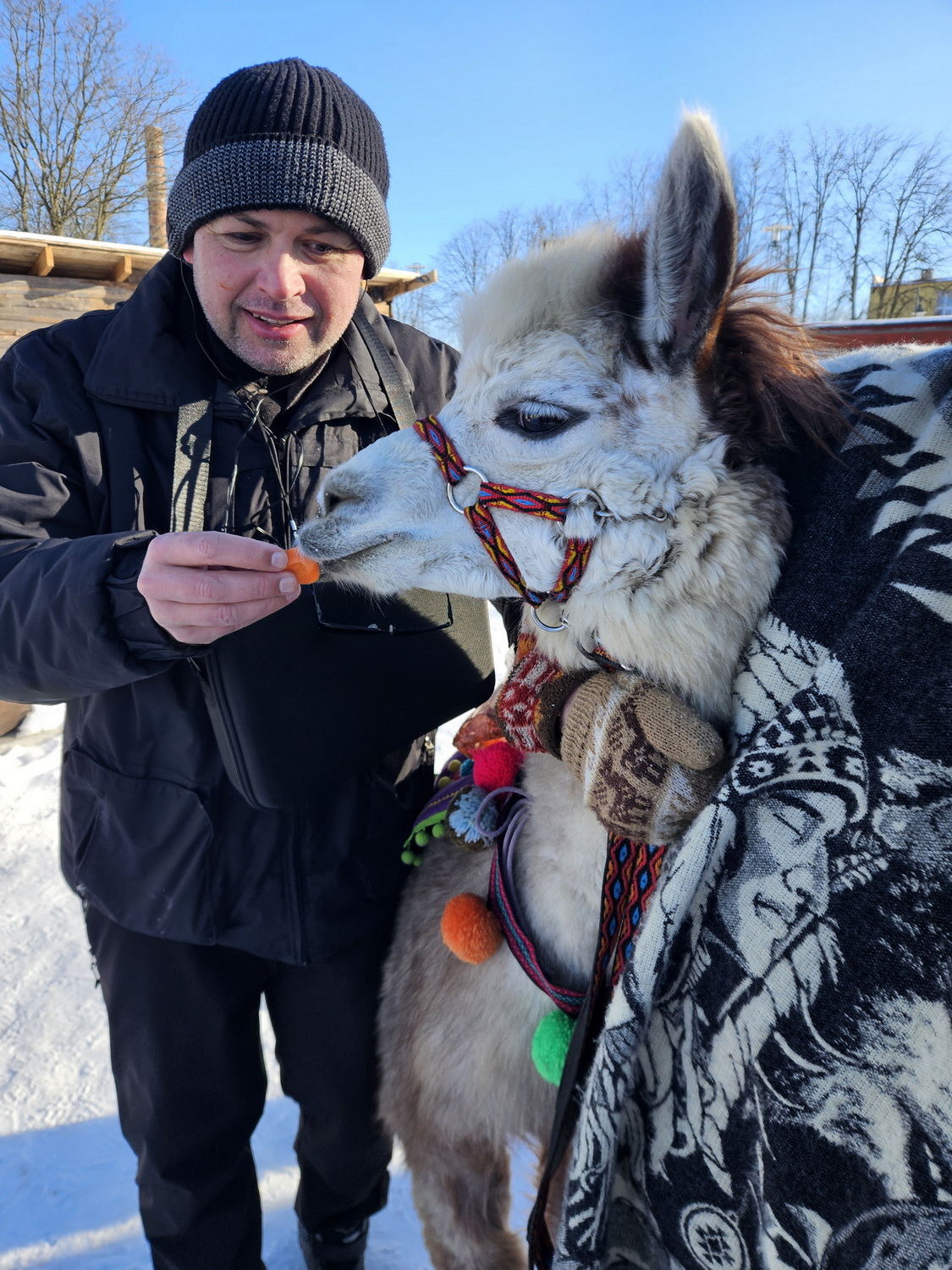 Autobus powrotny miał być około 14:20, ale przyszliśmy już o 13:00, więc czekała nas godzina postoju. Na szczęście w Supraślu spotkaliśmy przemiłe alpaki, które non stop jadły, zwłaszcza krojoną marchewkę.